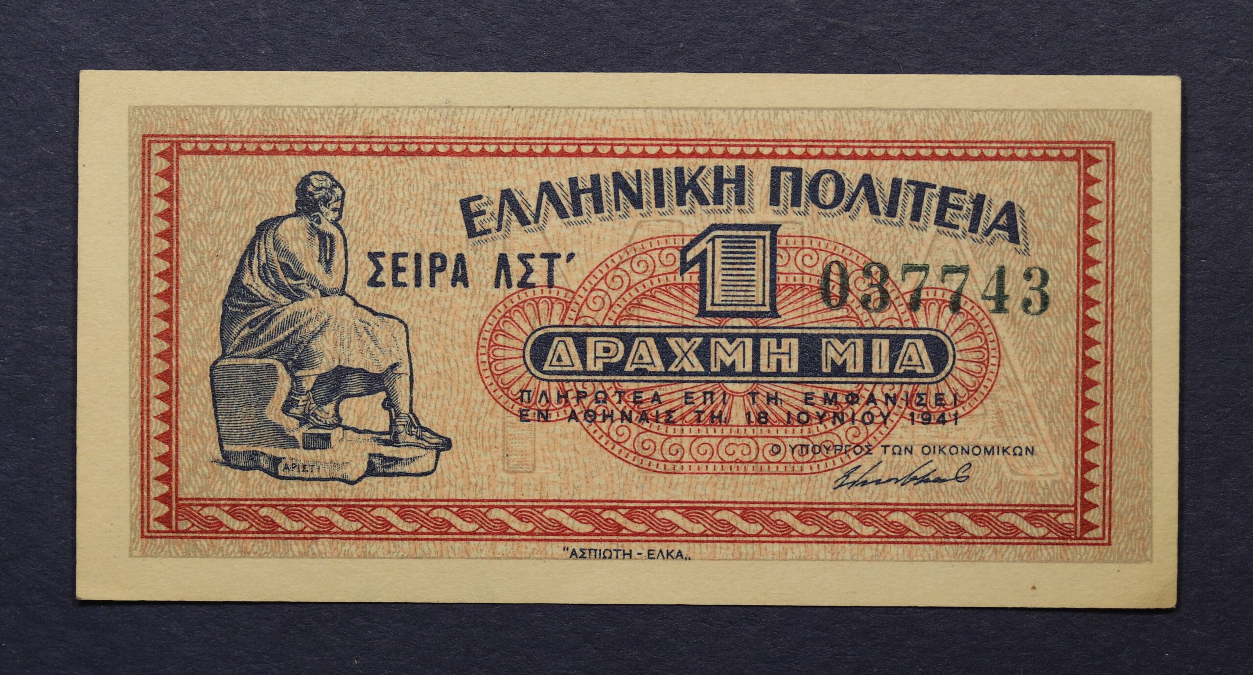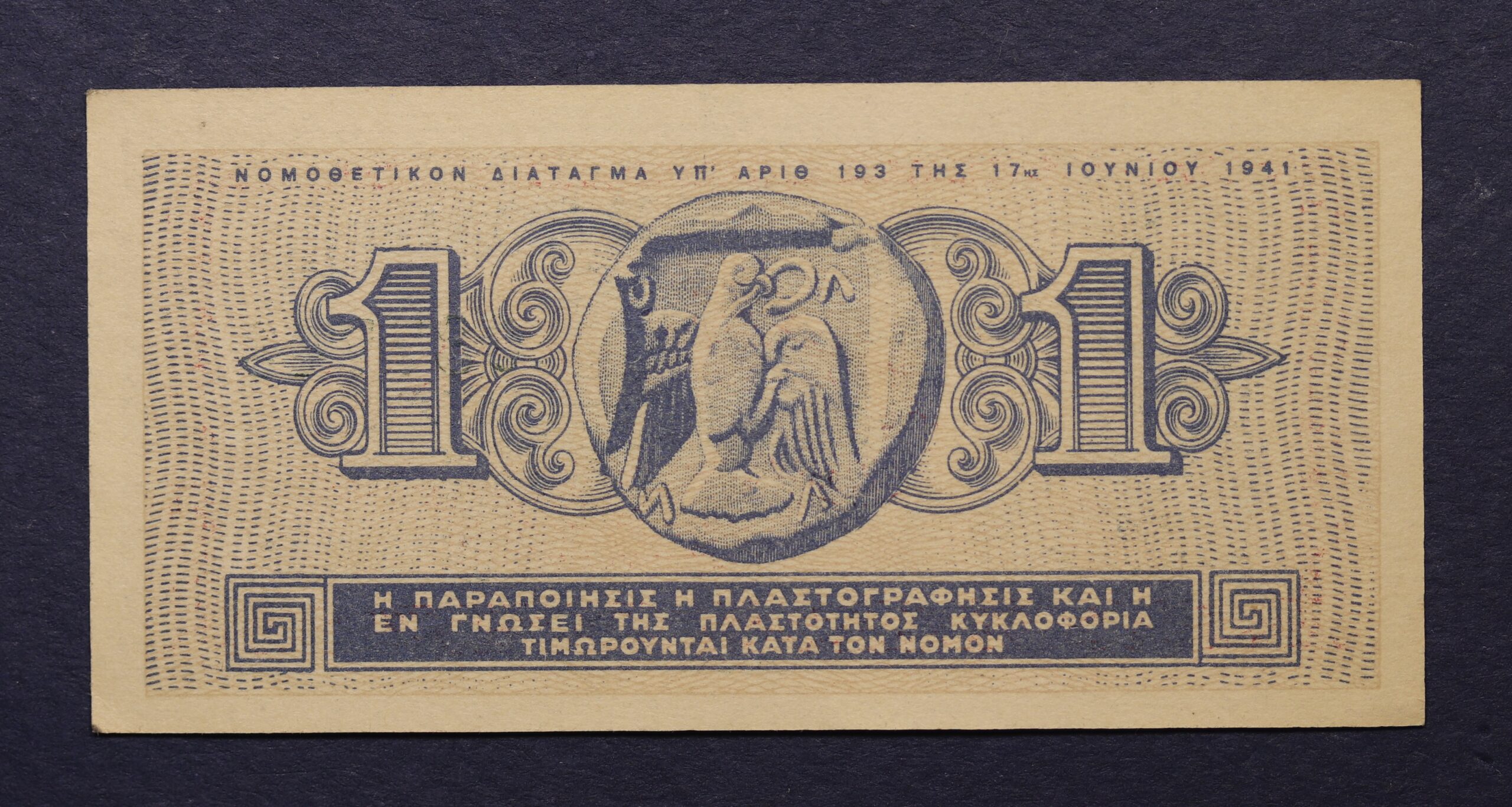 1 ΔΡΑΧΜΗ 1941 ΑΚΥΚΛΟΦΟΡΗΤΟ 037743 GB1131
