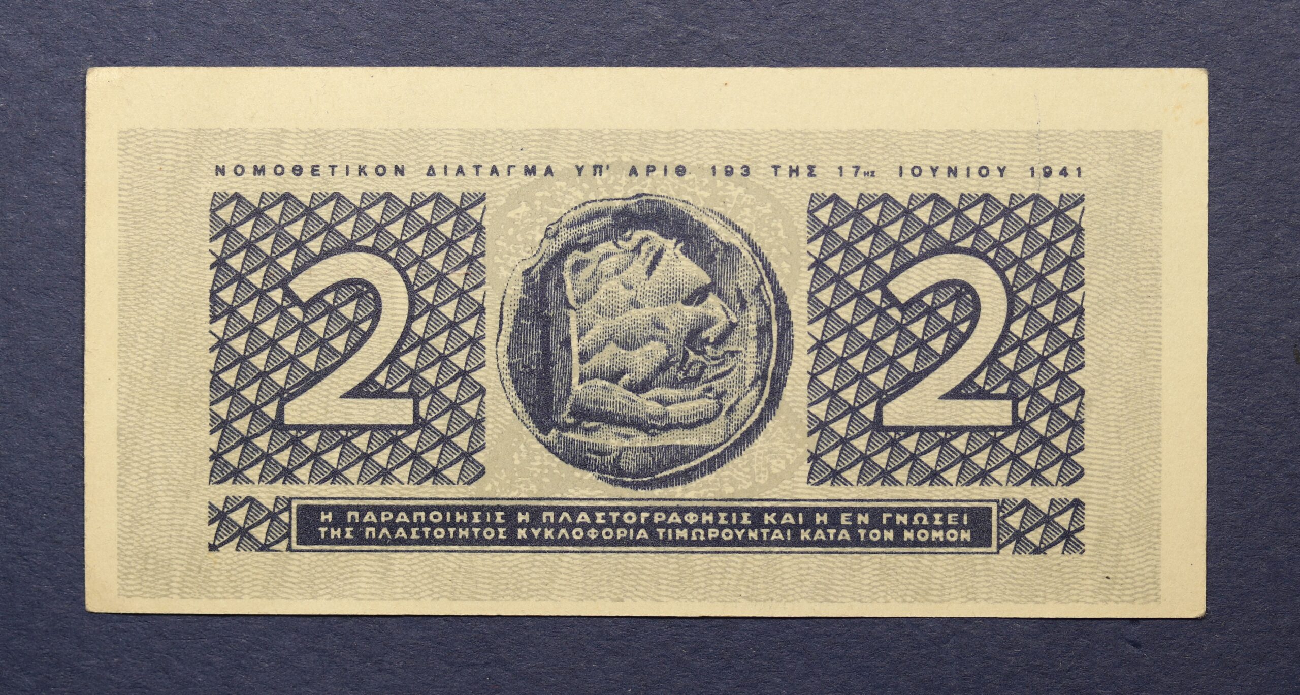 2 ΔΡΑΧΜΕΣ 1941 ΑΚΥΚΛΟΦΟΡΗΤΟ 138577 GB1132