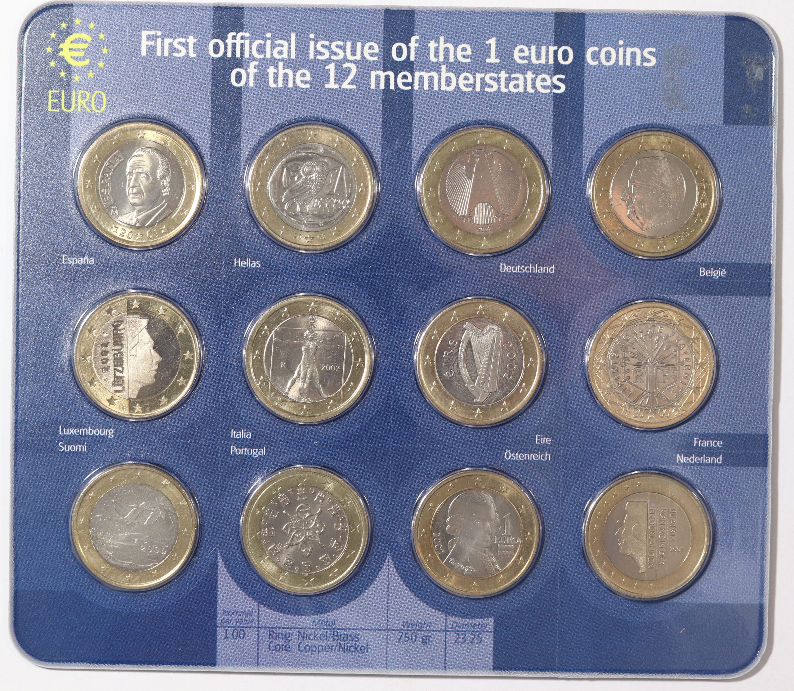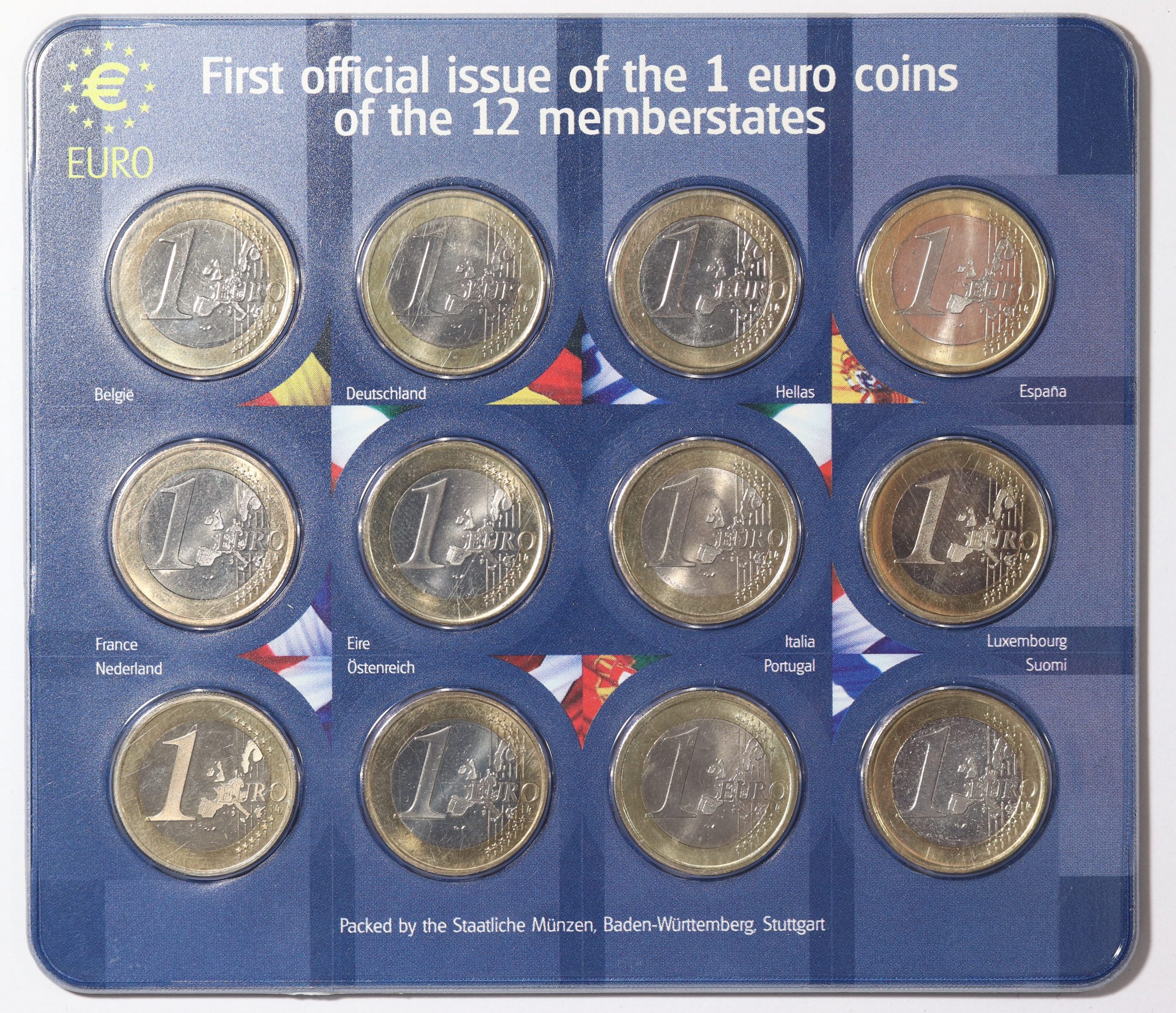 First Official Issue Of 1 Euro Coins Of the 12 Memberstates