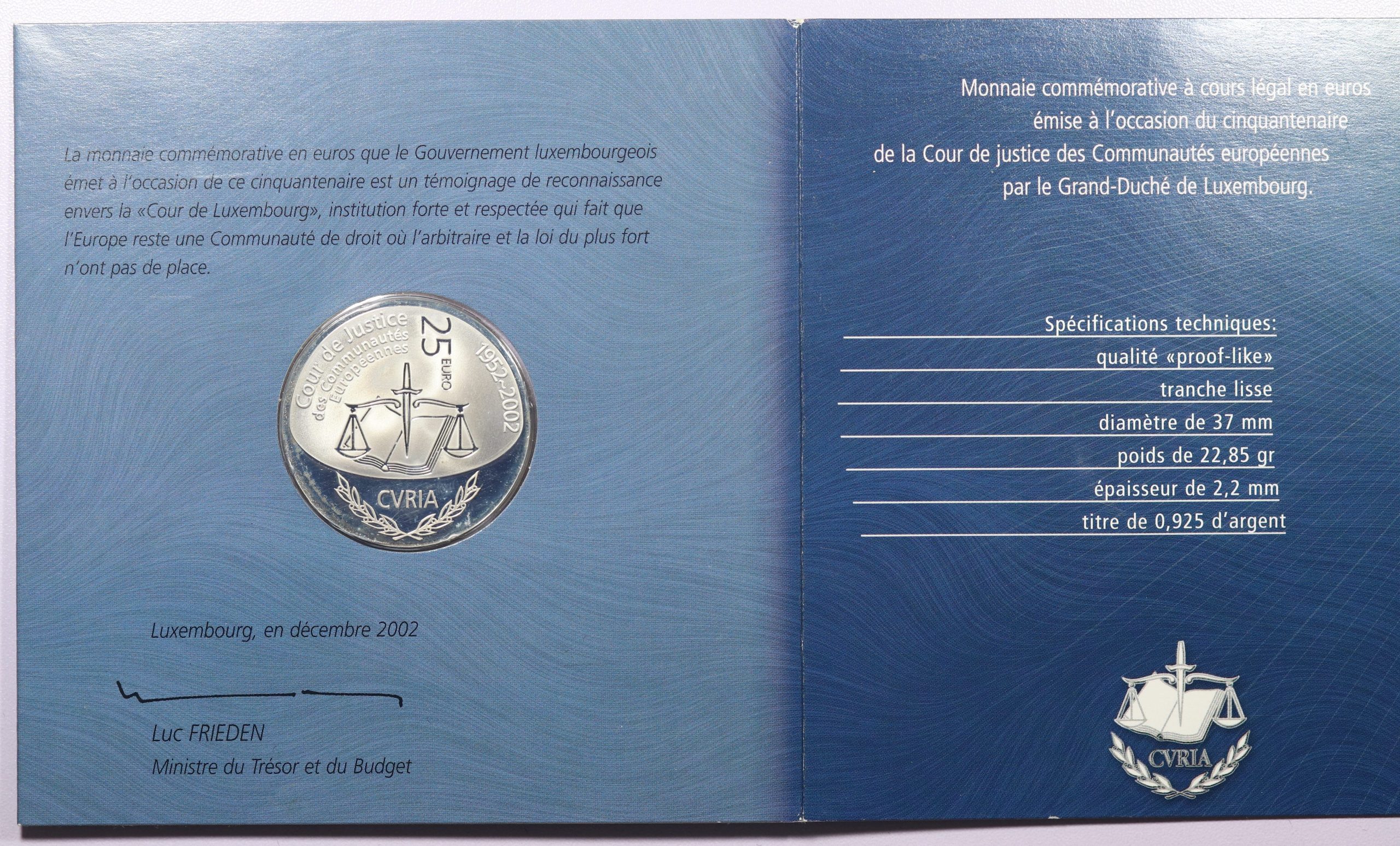 Luxemburg 25 Euro 2002 Silver Coin Proof